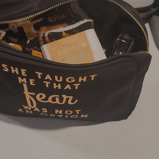 Inspirational Toiletry Pouch – “She Taught Me That Fear Was Not an Option” | Vinyl Toiletry & Travel Bag, 8.5 x 5 | Zippered Tote Pouch