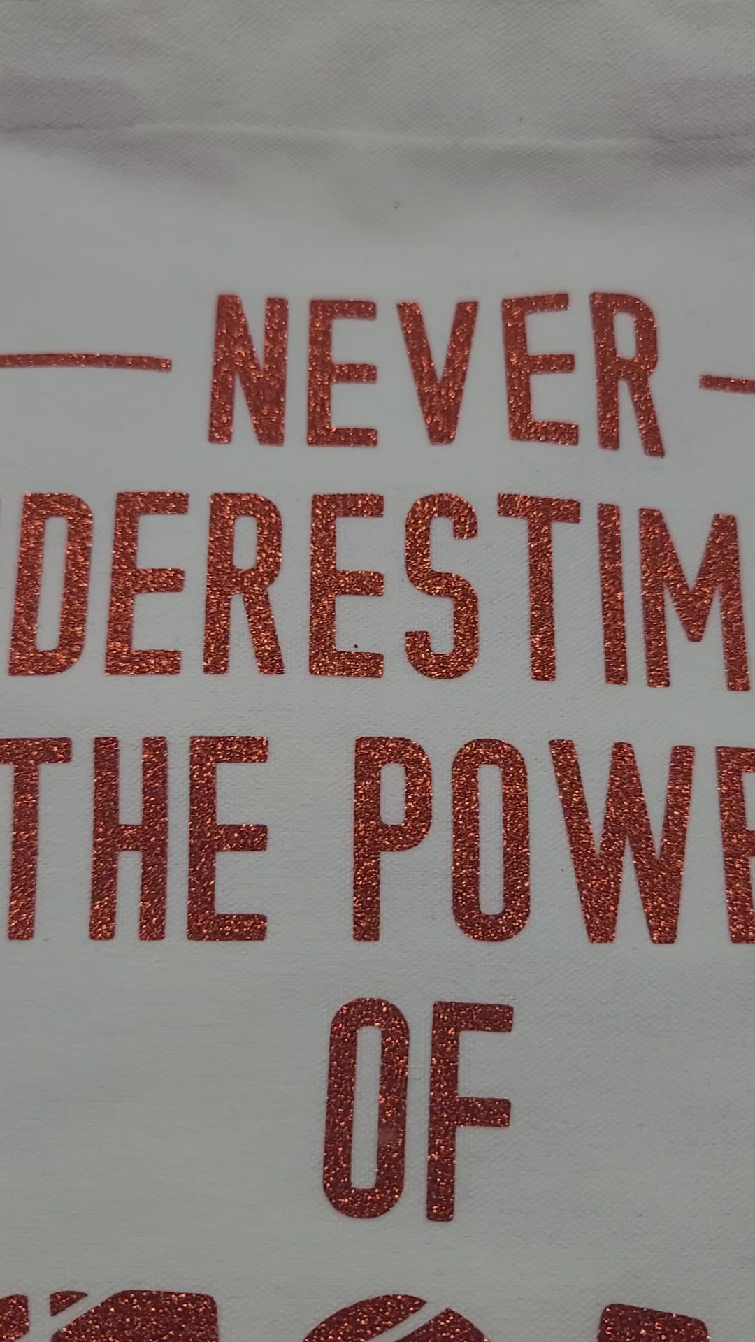 Each bag is hand-decorated by the Fear Meets Joy founder using golden-orange glitter heat-transfer vinyl, carefully applied to a strong, sturdy canvas tote designed for real life. This isn’t just a bag — it’s a declaration of hope, a reminder to keep going, and a bold encouragement you can carry with you wherever the day leads.